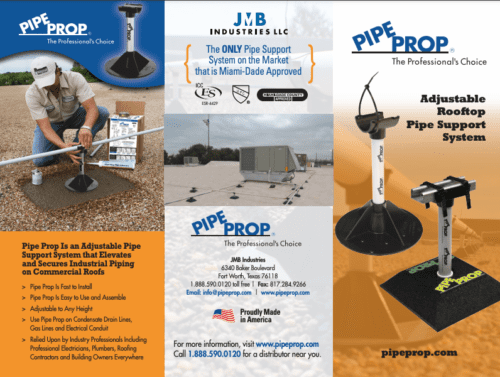 Pipe Prop, manufactured by JMB Industries of Fort Worth, Texas, was approved for Directory Listing IAPMO IGC 331-2016 by the International Association of Plumbing and Mechanical Officials (IAPMO) for Uniform Plumbing Code (UPC).